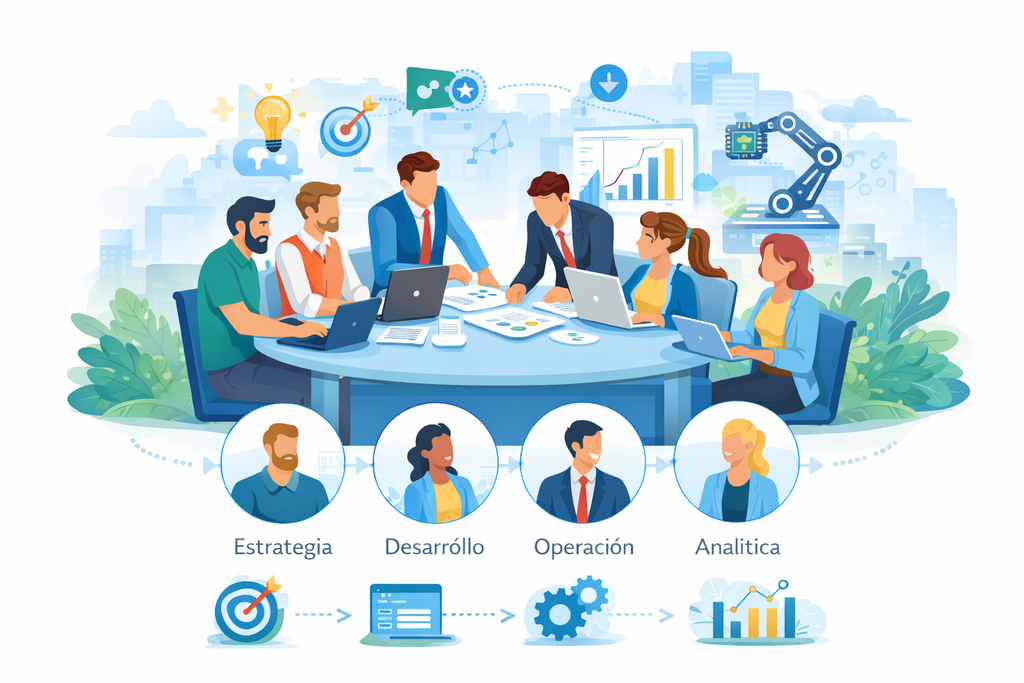 Trabajamos bajo un modelo de gestión integral e interdisciplinaria, que nos permite integrar de forma ágil todas las especialidades necesarias desde estrategia y desarrollo hasta analítica y operación para resolver cada necesidad de manera efectiva.